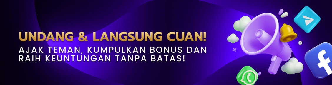 Undang & Langsung Cuan!<p><span data-sheets-root="1" style="font-size: 12pt; font-family: Arial;">Ajak temanmu bermain dan dapatkan reward tunai instan plus komisi seumur hidup! Semakin banyak teman yang kamu ajak, semakin besar penghasilanmu! 💰<br><br>Periode Promosi: 1 - 28 Februari 2026<br>Reward: Bonus Referral + Komisi Seumur Hidup</span></p>